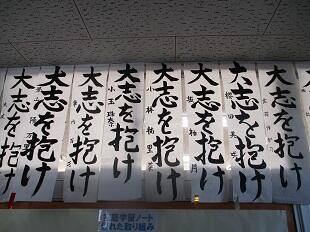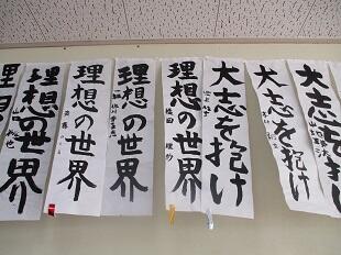 1月20日(木)先日行われた席書会の作品を廊下等に展示しました。その中で優秀な作品には金銀銅の各賞が授与されました。結果は次の通りです。