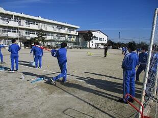 新年の初日は雪の登校となってしまいました。昨日から降り続いた雪にグランドは一面の雪化粧となり、今朝は凍結の中足下を気にしながらの登校となりました。しかし、川間中の生徒は元気に登校していました。今日は、表彰があり、全校統一テスト、清掃コンクール、税の作文、子ども県展、科学作品展、陸上、駅伝、吹奏楽、バスケット、ソフトテニス、サッカー、バレーが表彰されました。冬季休業明け集会では代表生徒が新年の抱負と決意を語りました。校長先生の話ではスマホの使い方を考えようという話がありました。明日から3連休となります。火曜日には席書大会がります。再度、気持ちを切り替えて火曜日また元気に会いましょう。