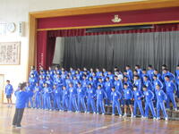 選手一人一人から明日の意気込みを受け、全校での応援によりエールを送りました。明日は、職員総出で東葛駅伝をサポートします。