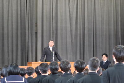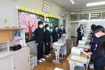 4月6日に着任式を行い、8名の先生方が着任されました。生徒代表2年生吉田さん、3年生坂本くんが新年度の抱負を語りました。また、クラスは発表もあり新しいクラスでたくさんの仲間と先生と行事や学校生活の思い出をつくっていきましょう。