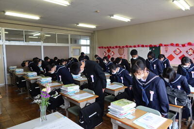2・3年の先輩達は「生きている証」、1年生は校歌を歌いました。