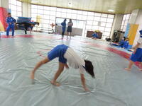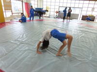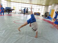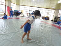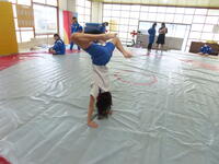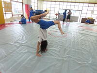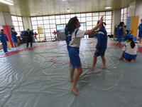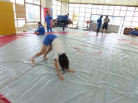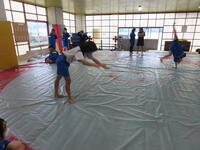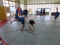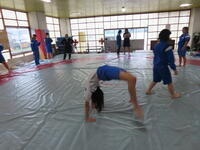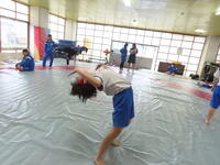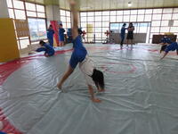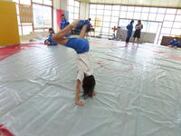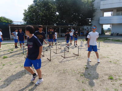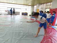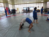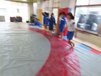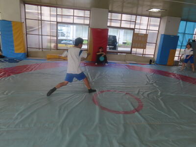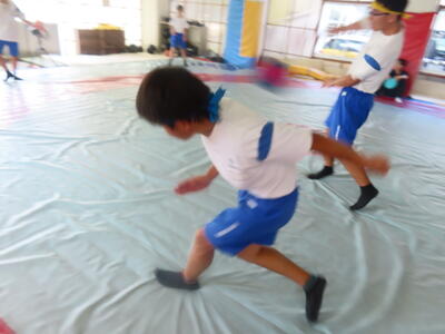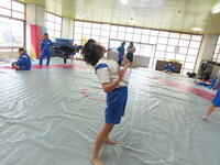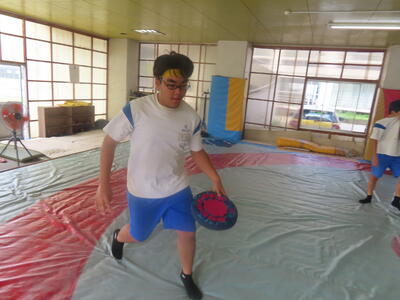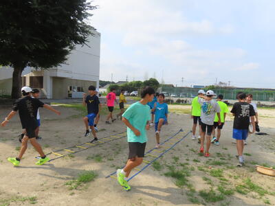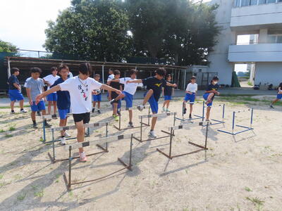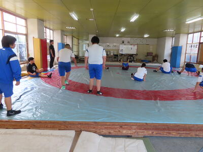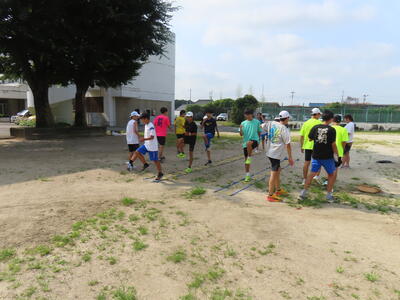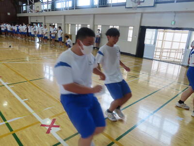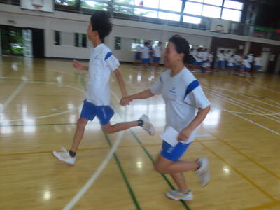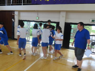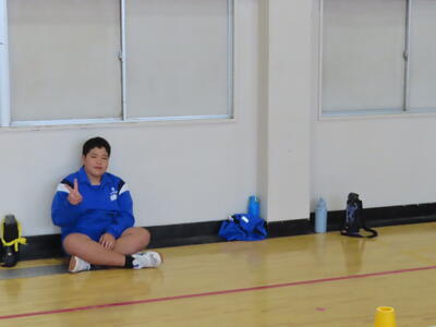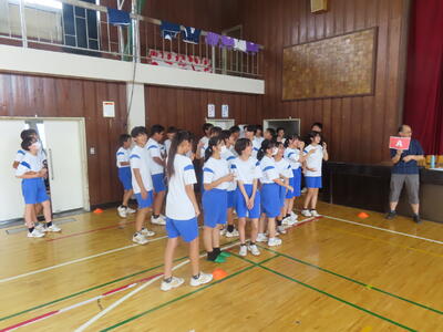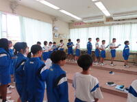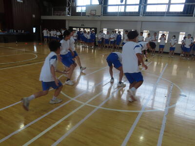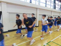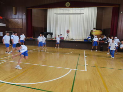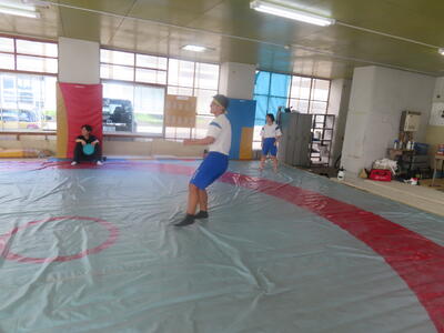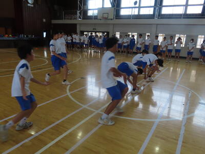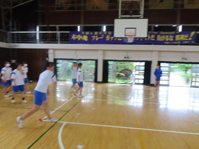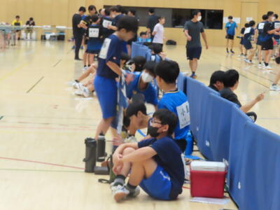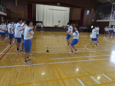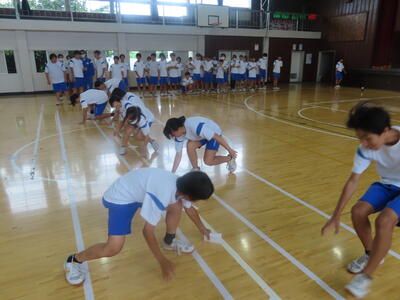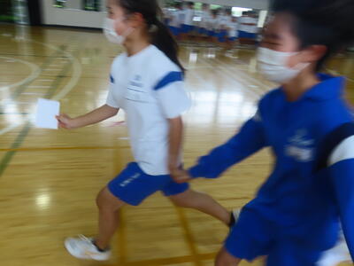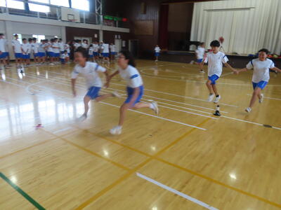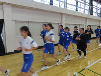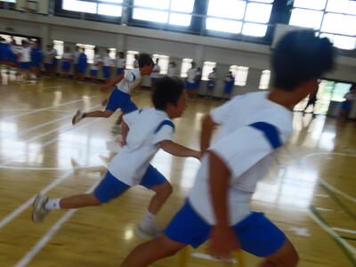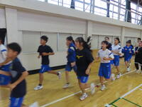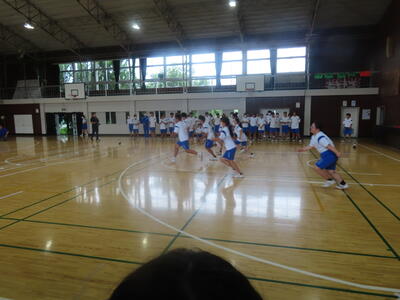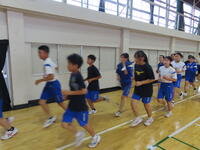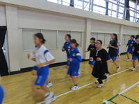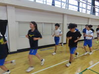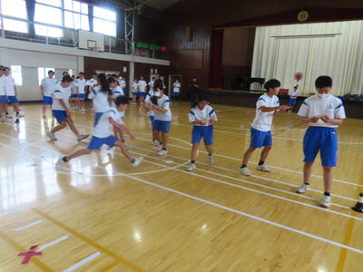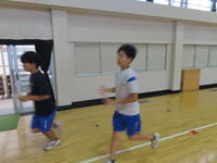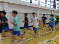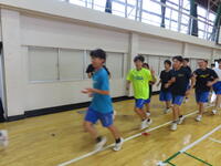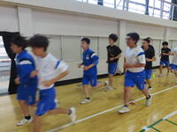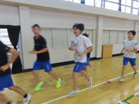 生憎の天気のため、市内陸上大会に向けた練習は体育館で行いました。