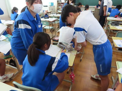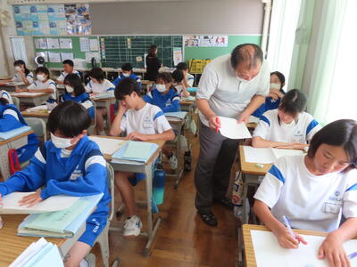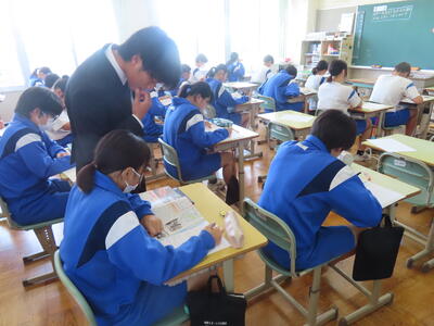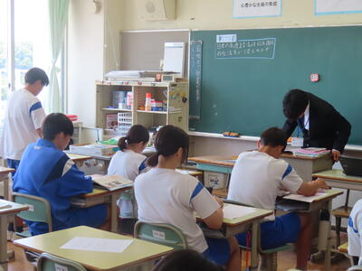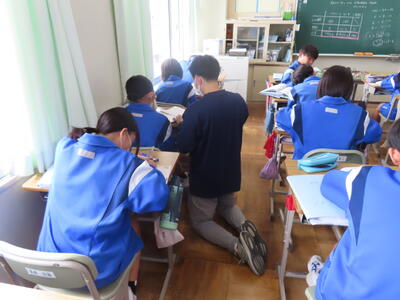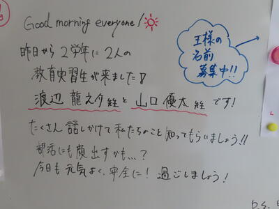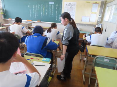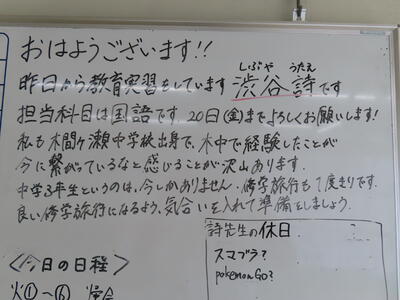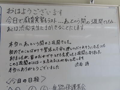 この日から2年生の職場体験学習が始まりましたが、HP担当者、なかなか学校から離れることができず、様子を見に行くことができませんでした。残念、、、また、教育実習生2名が精錬授業を行いました。