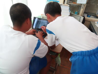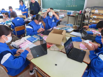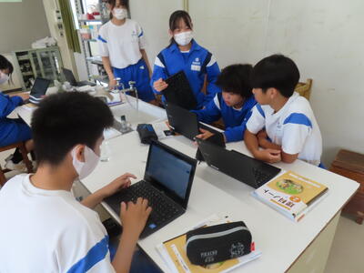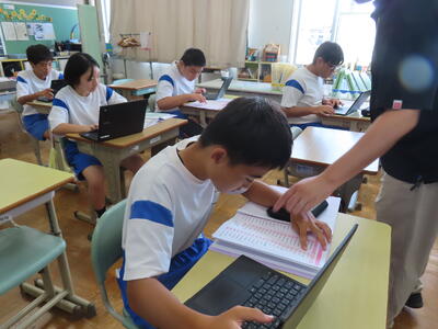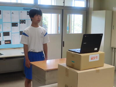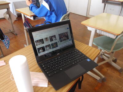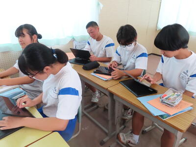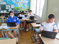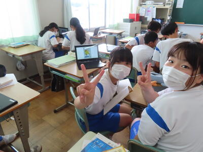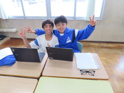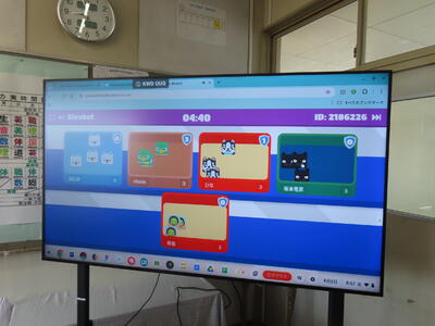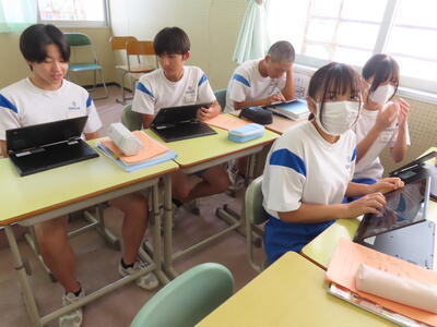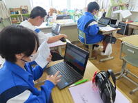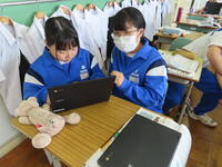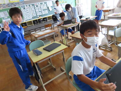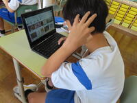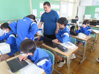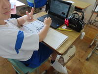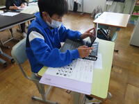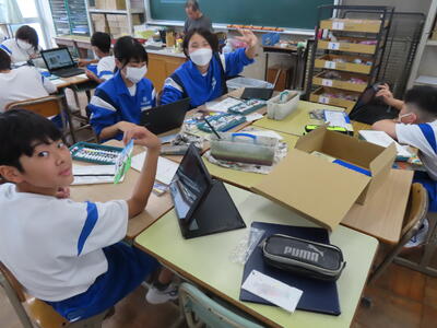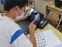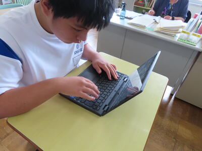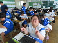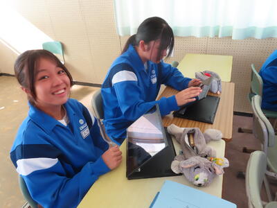 松の実学級です。タブレットを使って英語の学習をしていました。