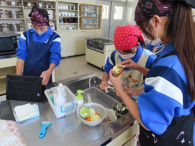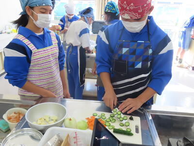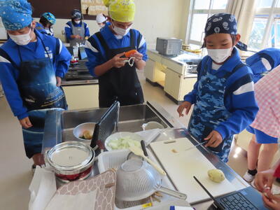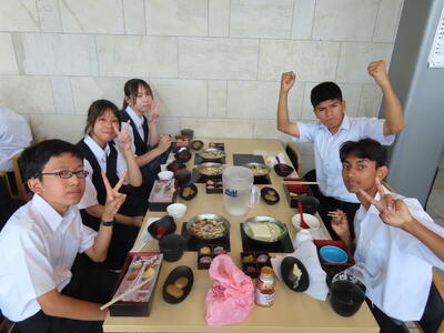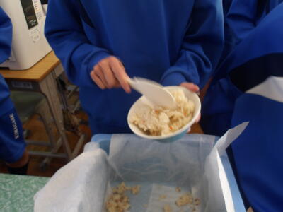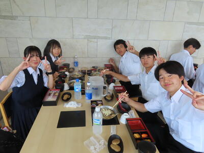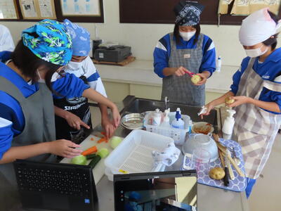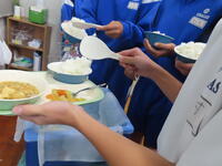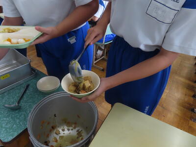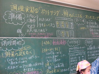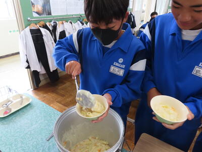 2年生の家庭科、調理実習です。鮭のムニエル、ポテトサラダ、オニオンスープでした。美味しかったです。