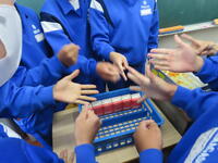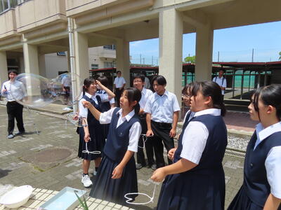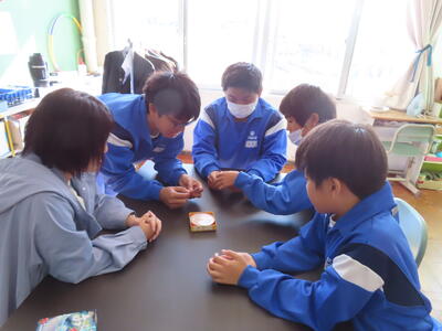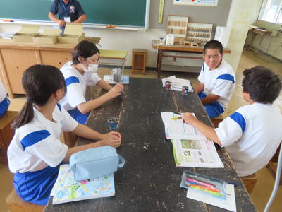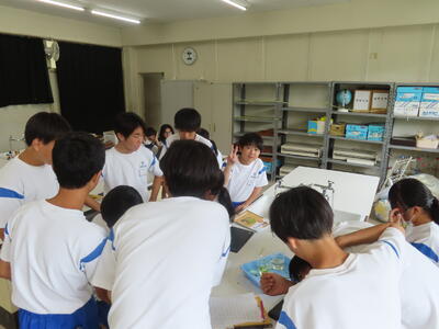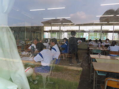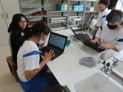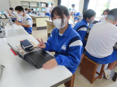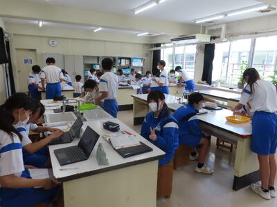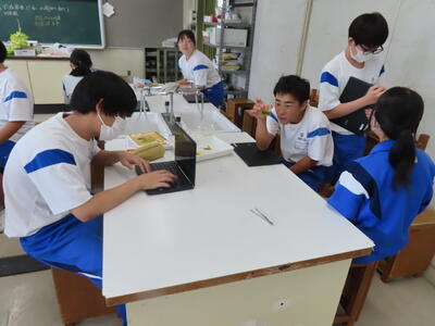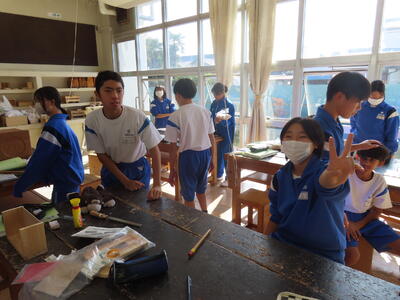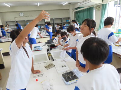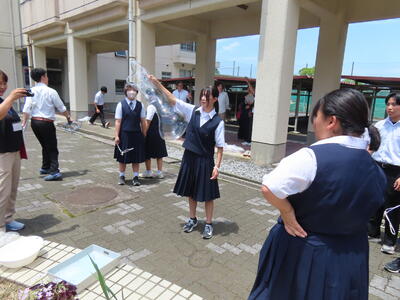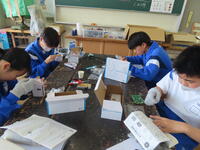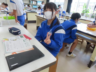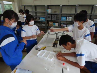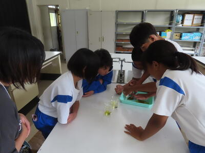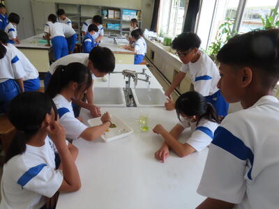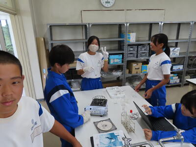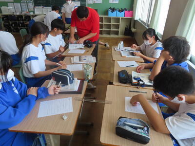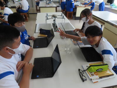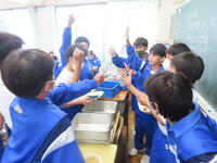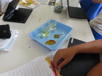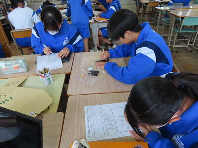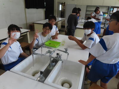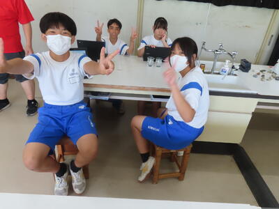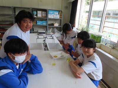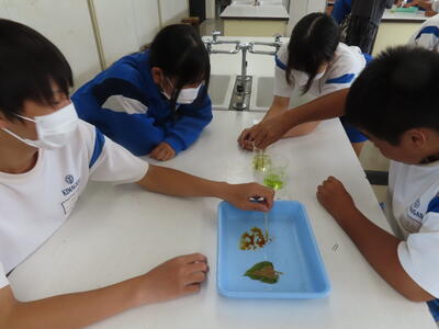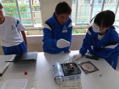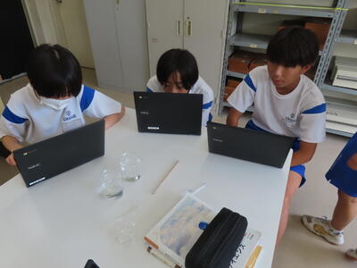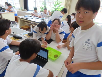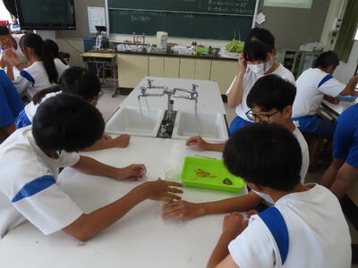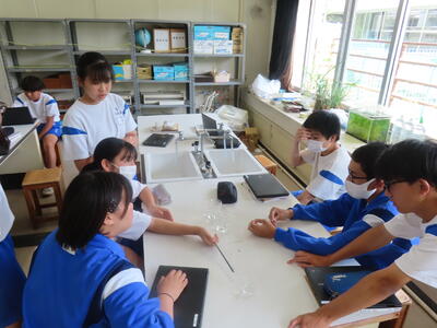 1年生の理科です。研究授業で実験をしました。とても楽しそうでした。