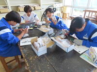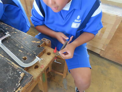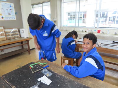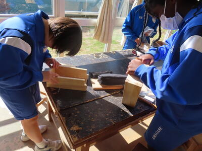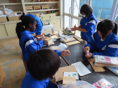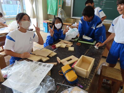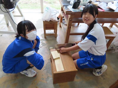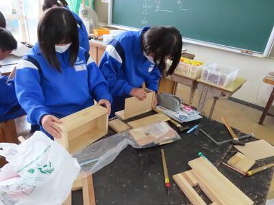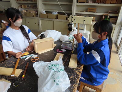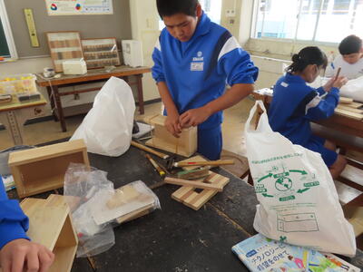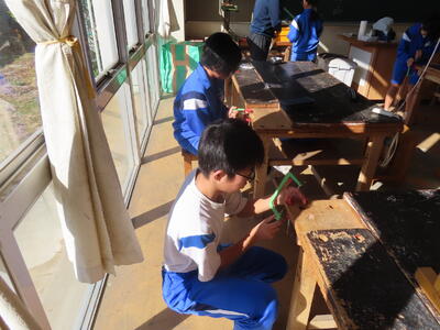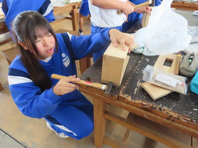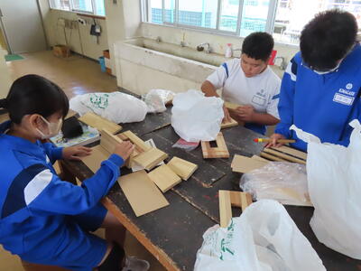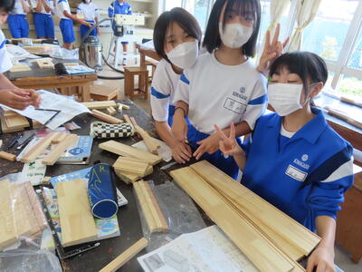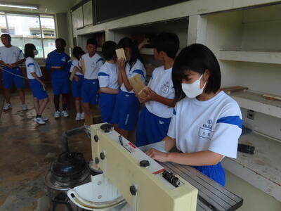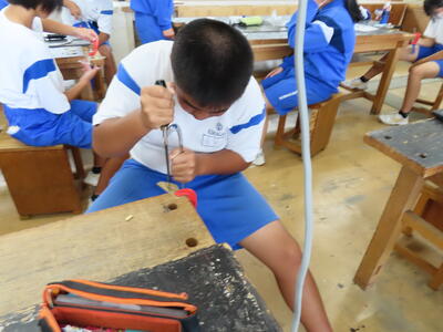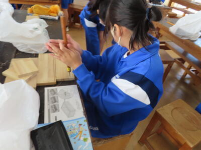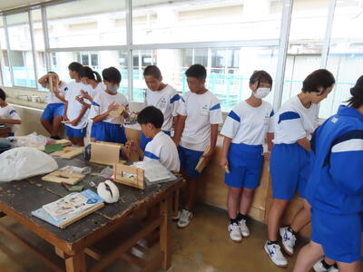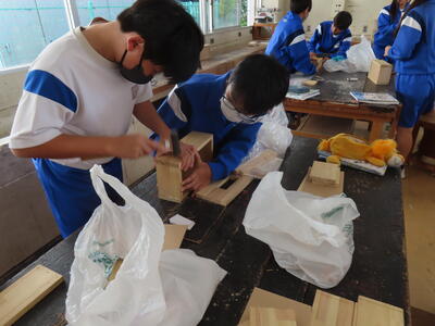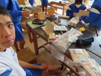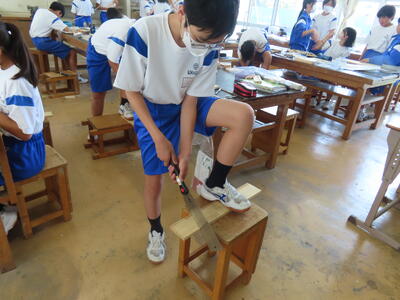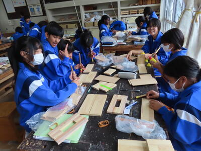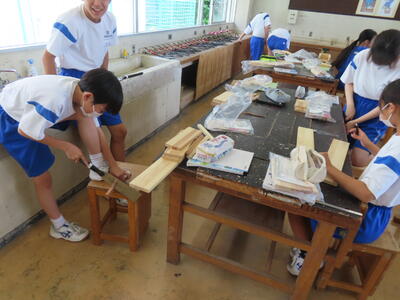 1年生の技術(木材加工)です。完成が楽しみです。