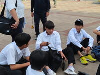 今日は第3回定期テスト1日目で昨日もお知らせしたとおり、全学年、理科、国語、社会のテストを受けました。できはどうだったのでしょうか。気になるところです。さて、今朝は自転車通学者にトラブルが2件発生。登校指導を学校前信号機のところでしていると、「先生、チェーンが外れてしまいました」「君は先週もじゃないか」が1件目。「先生、パンクしてしまいました」が2件目。下校時に安全に家まで帰ってもらうため、今日は自転車修理屋になりました。他の先生方も手伝ってくれて無事終了。一件落着でした。