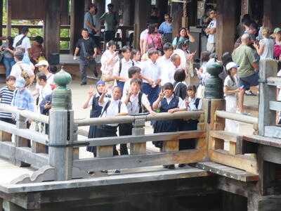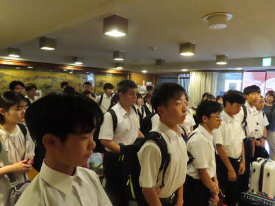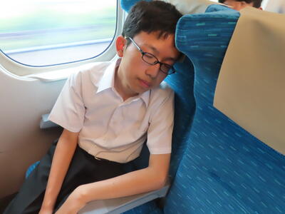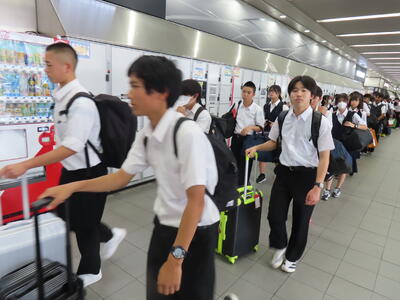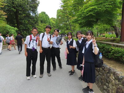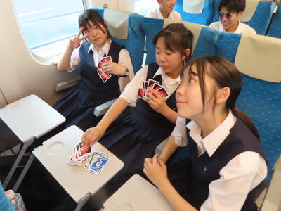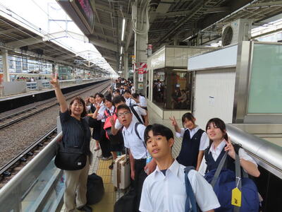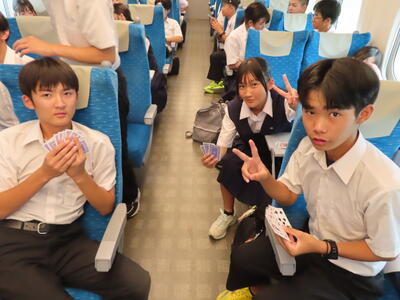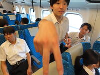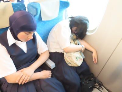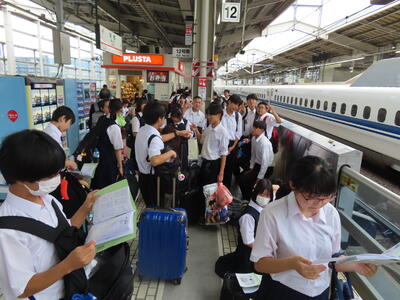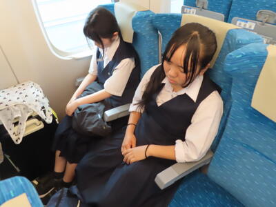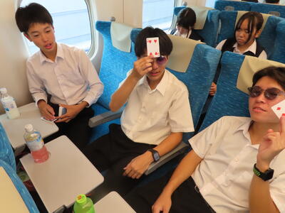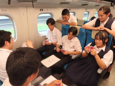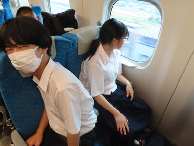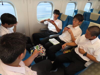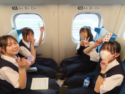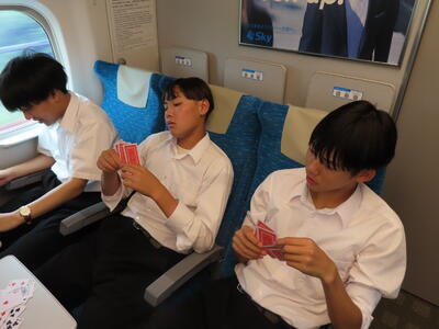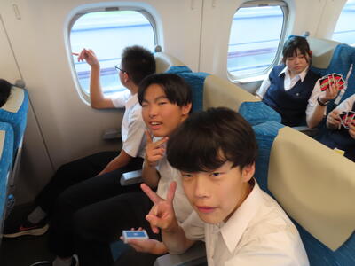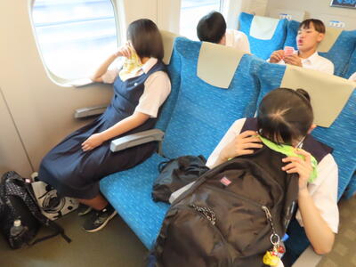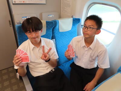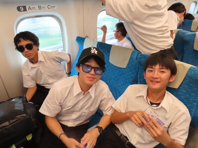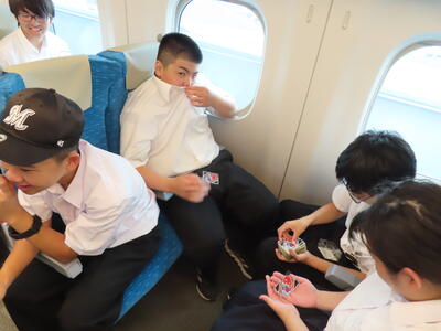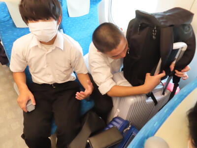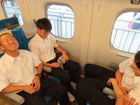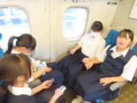 京都市内での予定全行程を終え、今、新幹線の車内です。すぐに寝落ちした生徒、すぐにカードゲームを始めた生、それぞれですが、全員が体調を崩すことなく、元気に帰れそうです。この後もお迎えなどあると想いますが、よろしくお願いします。2泊3日間お疲れ様でした。