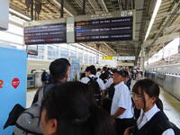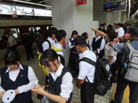 早朝から川間駅までの送り、ありがとうございました。体調不良者もなく、新幹線車内です。