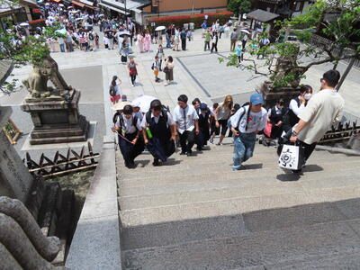 いよいよ2日前になりました。6校時、学年集会を行っていました。明日はいち早く荷物を京都に送るため、登校時には持ってこないといけません。さて、準備は進んでいるのでしょうか?今日も京都の天気予報をチェックしました。6日(金)晴れ後曇り最高気温30℃降水確率20%、7日(土)最高気温30℃降水確率30%、8日(日)最高気温28℃降水確率40%です。雨マークはないのですが、降水確率が、、、雨対策必要そうです。