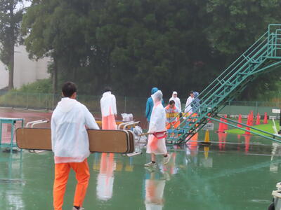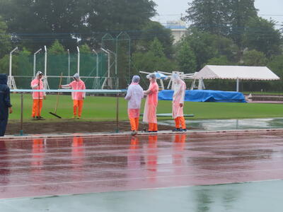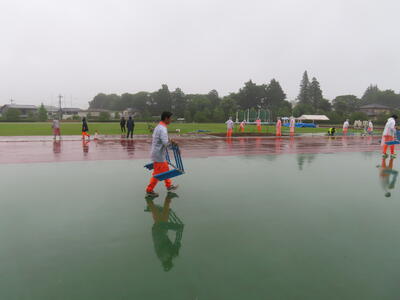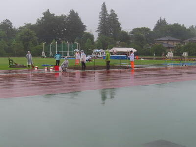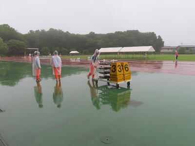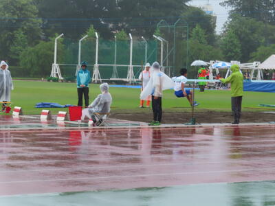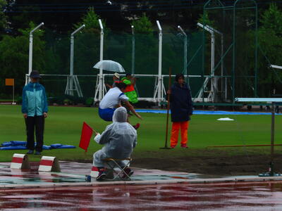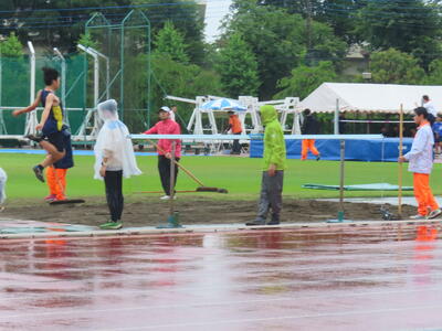 雨の降る中、自分たちの大会でもないのに、献身的に準備を進める西武台千葉高校陸上競技部の皆さんの姿に感動すら覚えました。ありがとうございました。