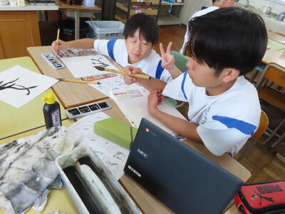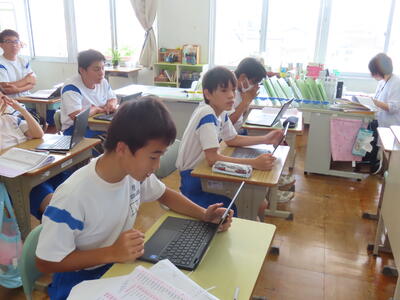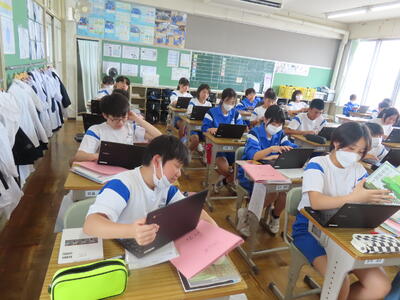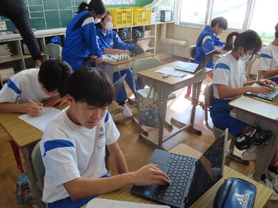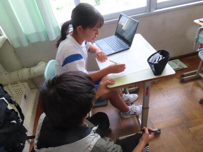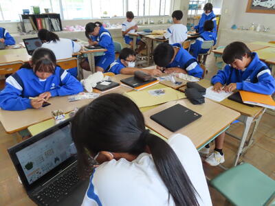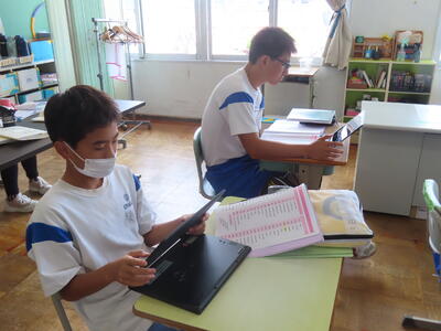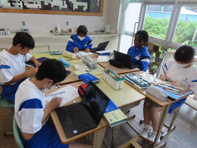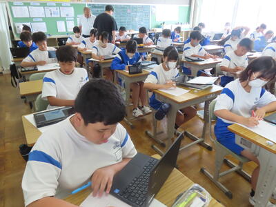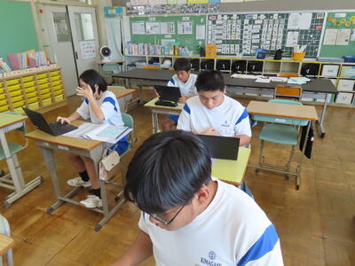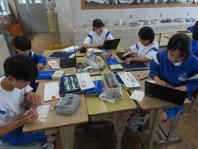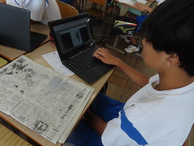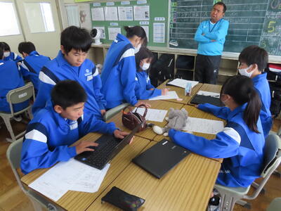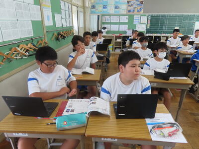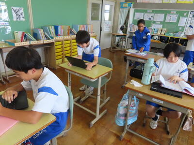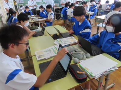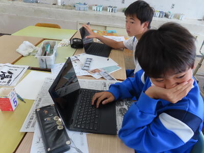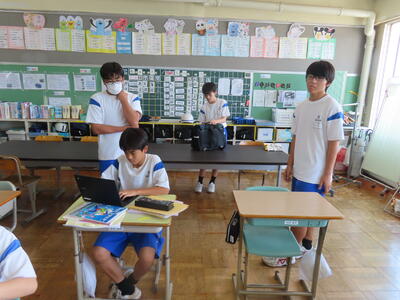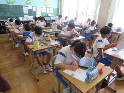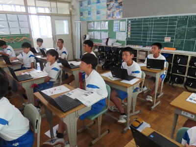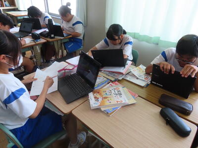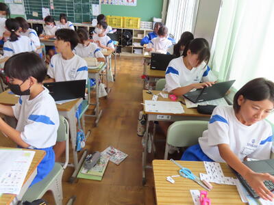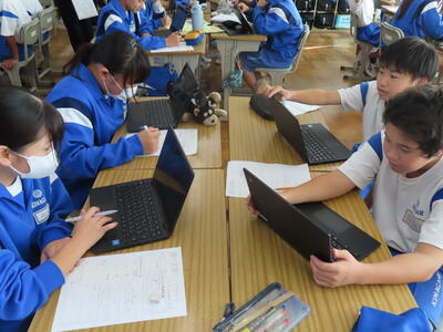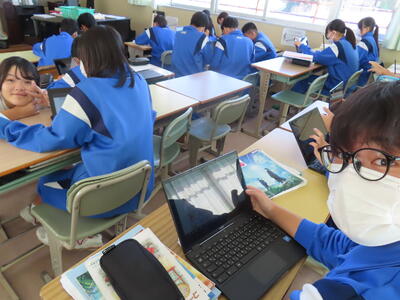 1年生は校外学習に向けた調べ学習をしていました。
