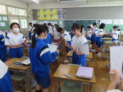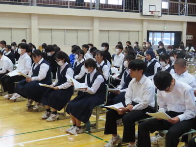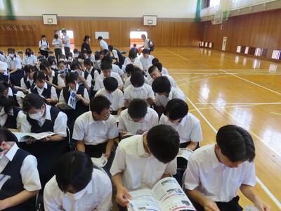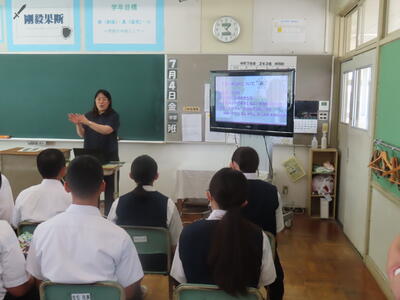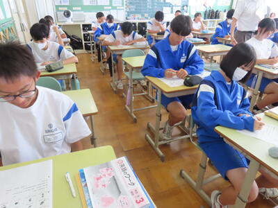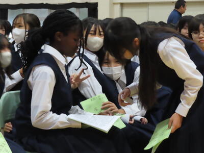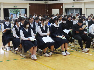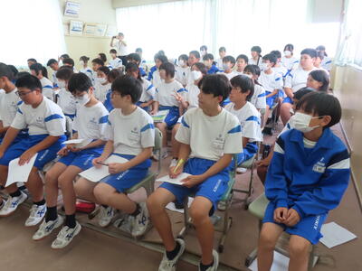 昨日は1年生が、いじめに関する授業で「脱 傍観者授業 わたしたちの選択肢」を実施しました。講師の先生からは、「自分事と考えて、熱心に授業に取り組んでいました」と話していただけました。今後も学校では「いじめに絶対に許されないもの」として捉え、指導を進めていきます。何かお悩みのことがありましたら、お気軽に学校までご連絡ください。
