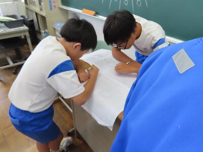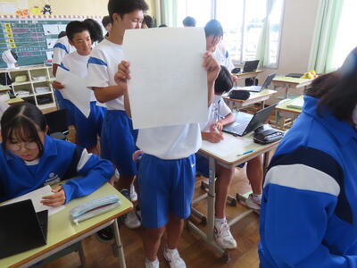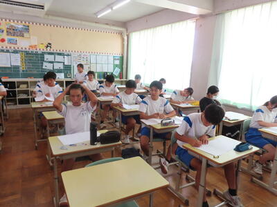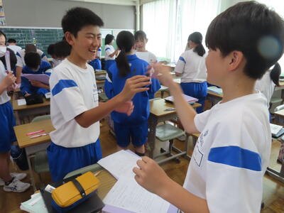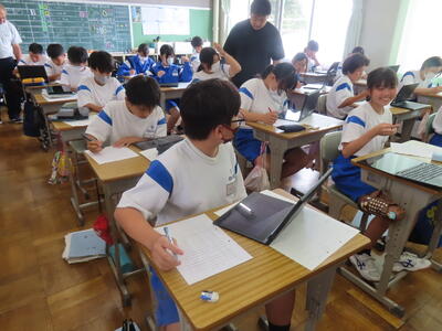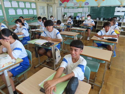 2年生の数学、研究授業です。図形は得意、ということが分かりました。