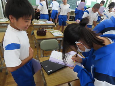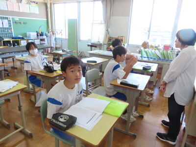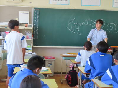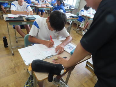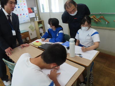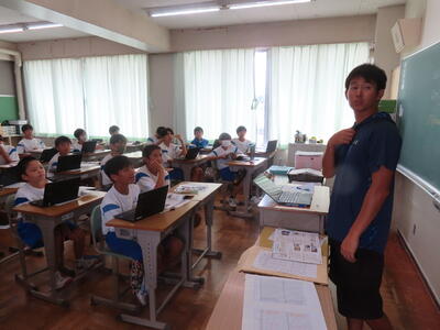 教育実習生の大学の先生が授業を観に来ました。
