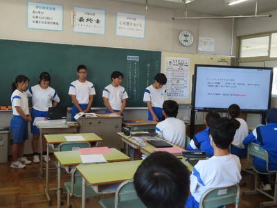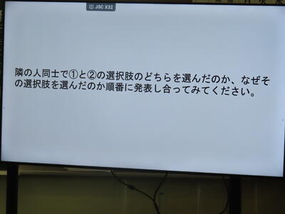 1年生の「脱 傍観者 わたしたちの選択肢」の授業です。いじめはダメです!!!