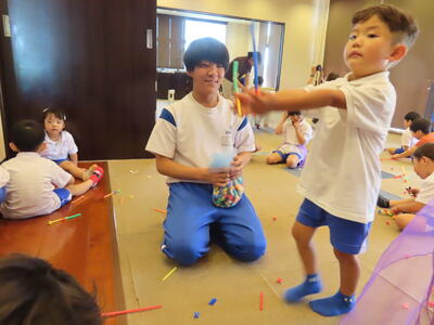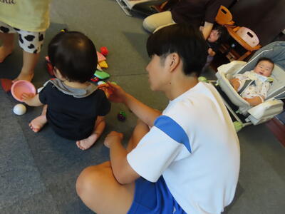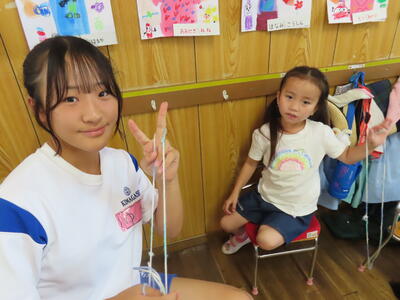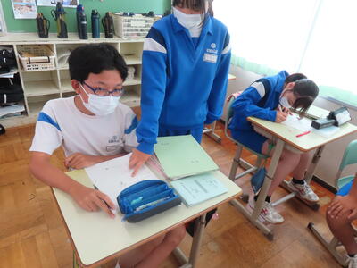 教育実習生にマンツーマンで指導を受けています。