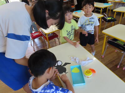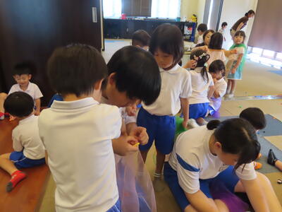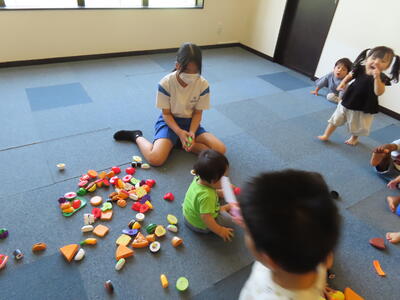 松の実学級です。ブロックを組み立てていました。これが結構面白いんです。