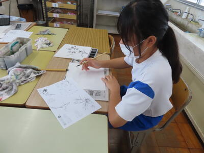 松の実学級も美術でした。細かい描写です。
