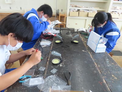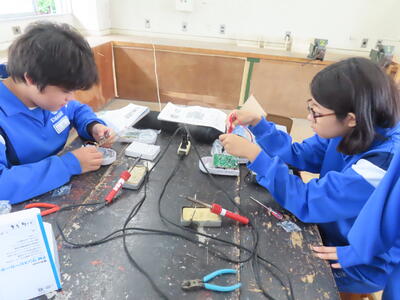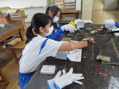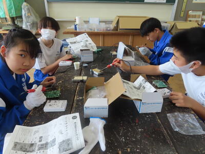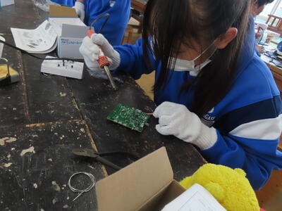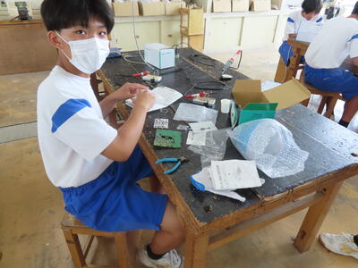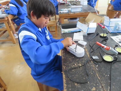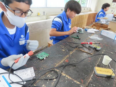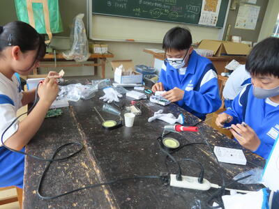 2年生の技術です。半田ごてでやけどしないように注意です。