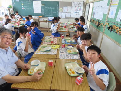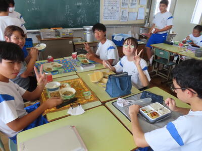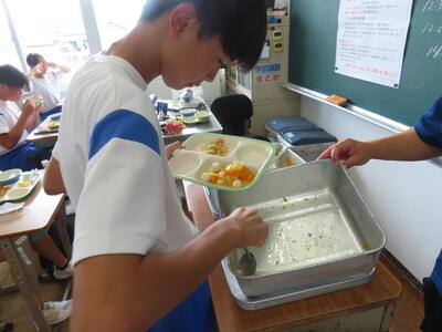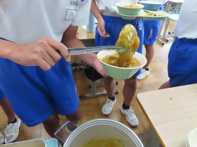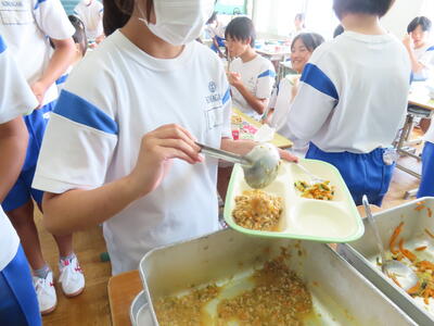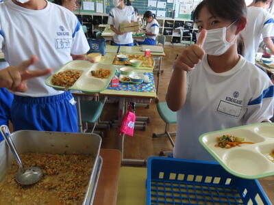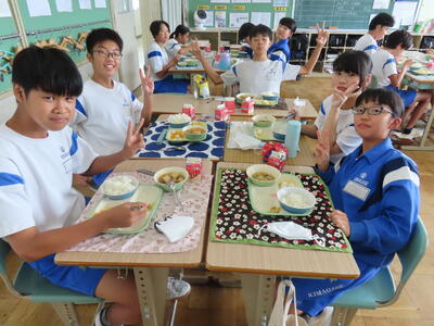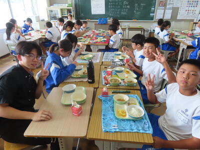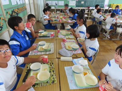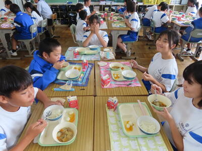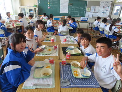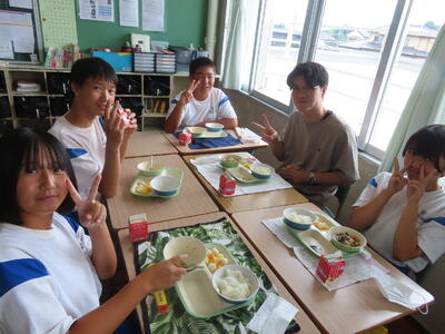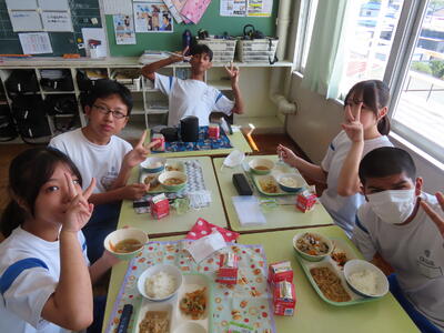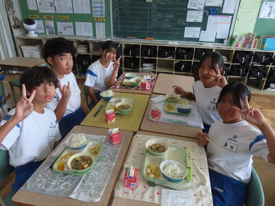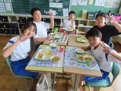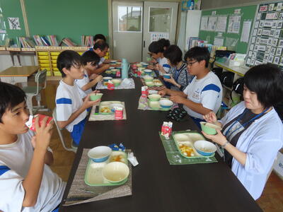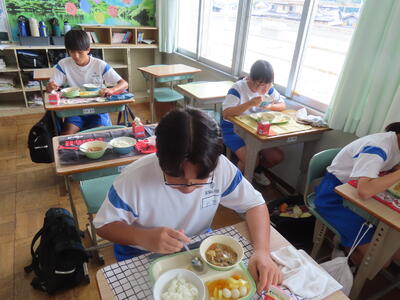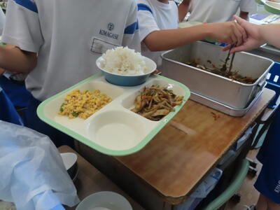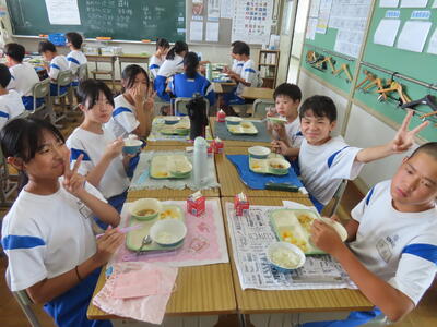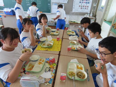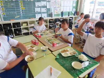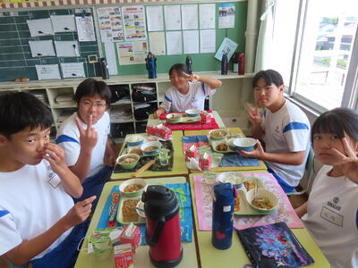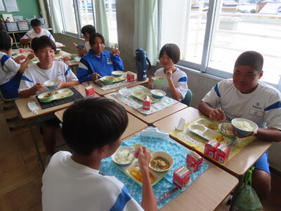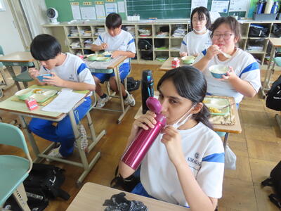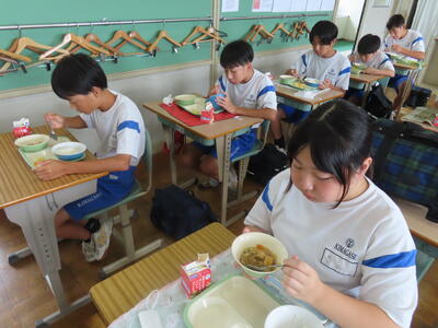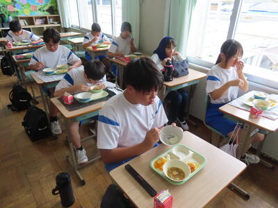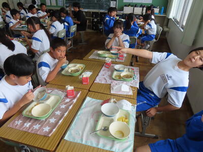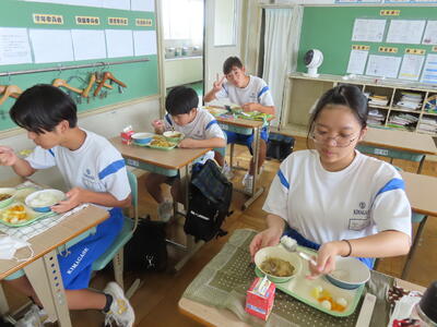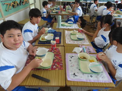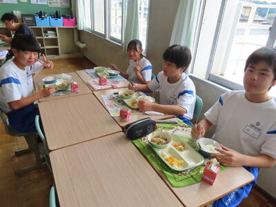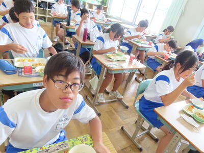 この日。HP担当者は午前、環境整備、午後からは学校を離れたため、給食時のみの撮影となってしまいました。2年生の教室をまわったのですが、よく食べてました。暑さを乗り越えるためにも、食事は重要ですね。