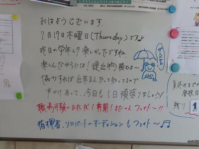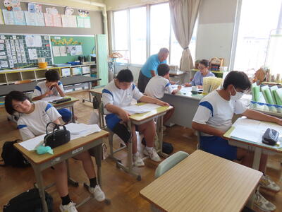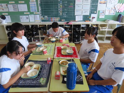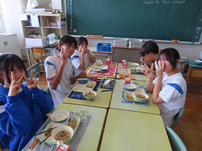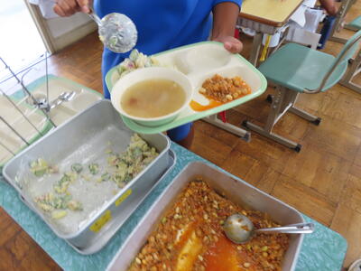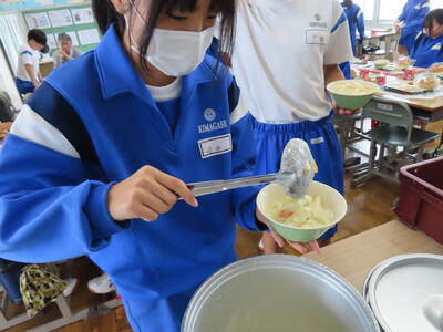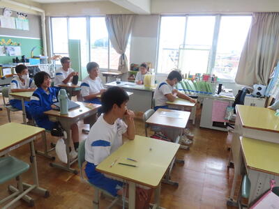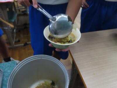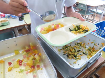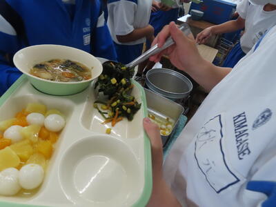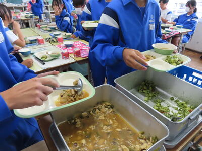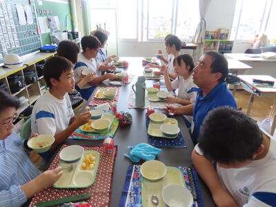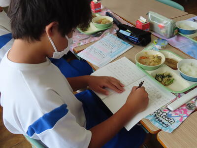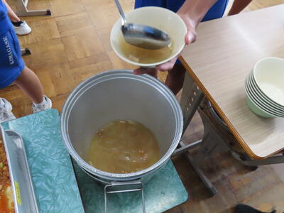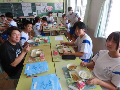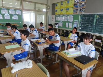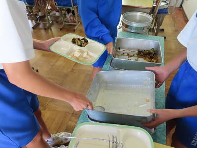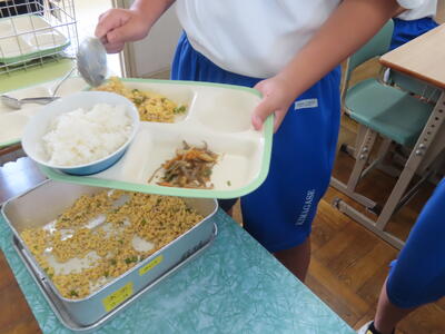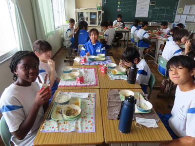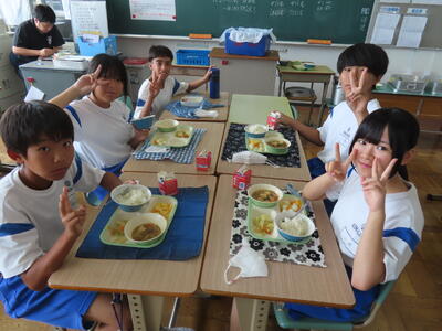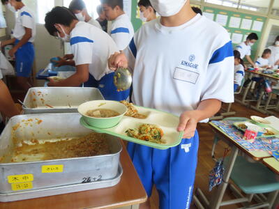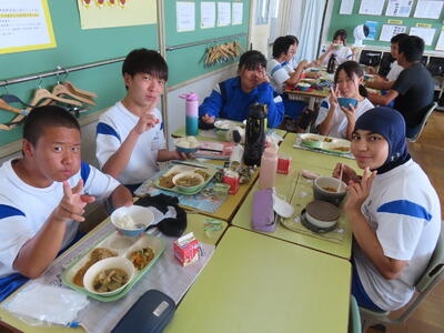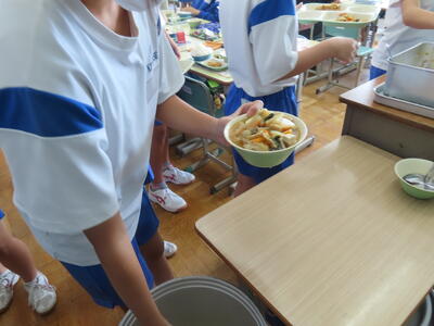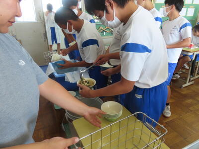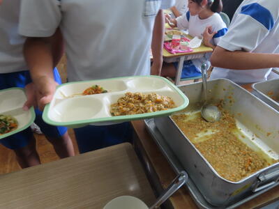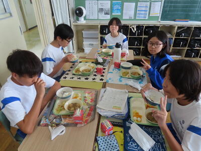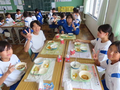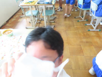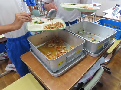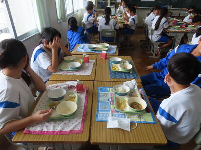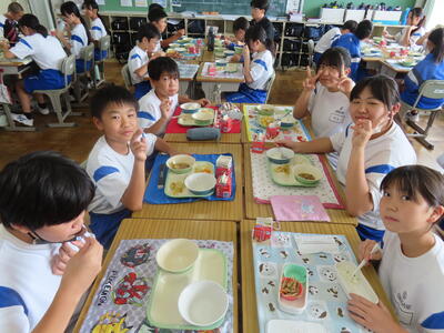 この日。HP担当者は午前、環境整備、午後からは学校を離れたため、給食時のみの撮影となってしまいました。2年生の教室をまわったのですが、よく食べてました。暑さを乗り越えるためにも、食事は重要ですね。
