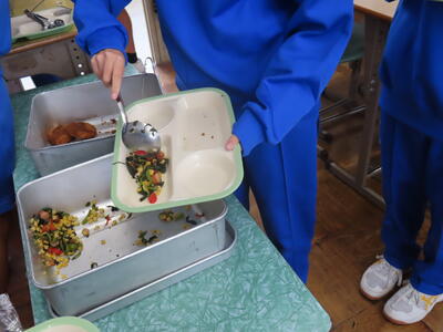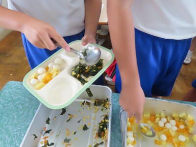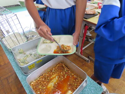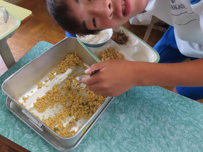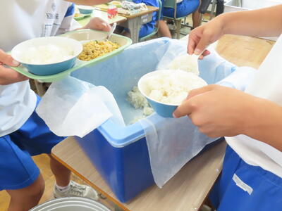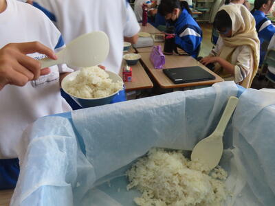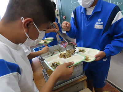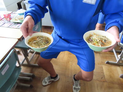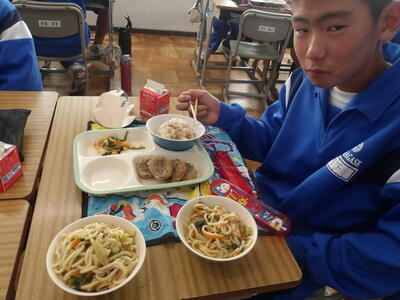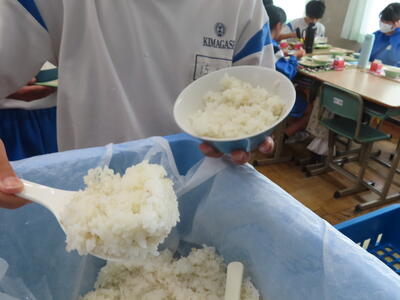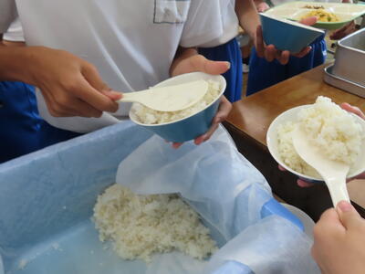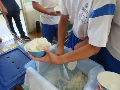 3年生と1年生のお変わり祭りです。1年生の方が控えめです。