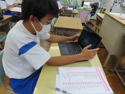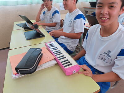 3年生の音楽の授業です。タブレットを使っていました。