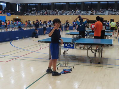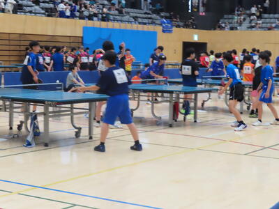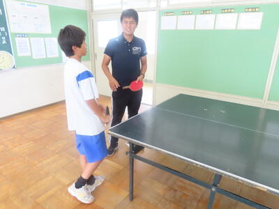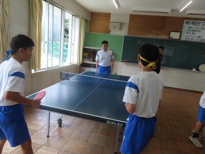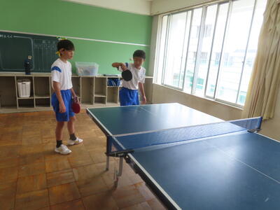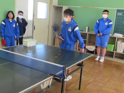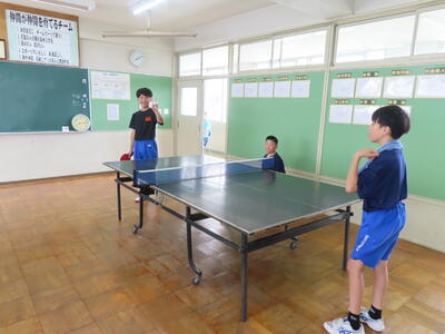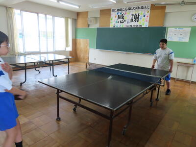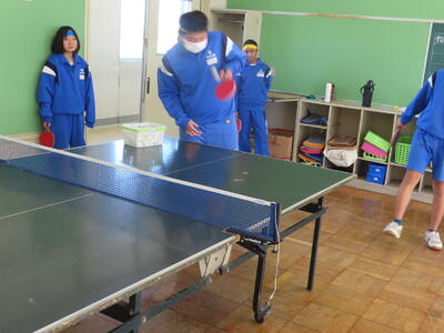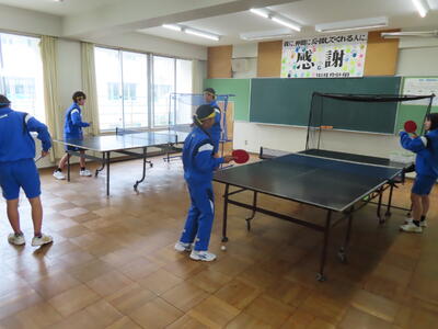 松の実学級は体育で卓球をしていました。全員が揃い、楽しそうでした。