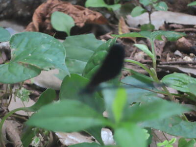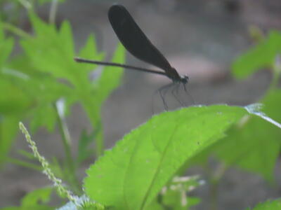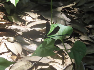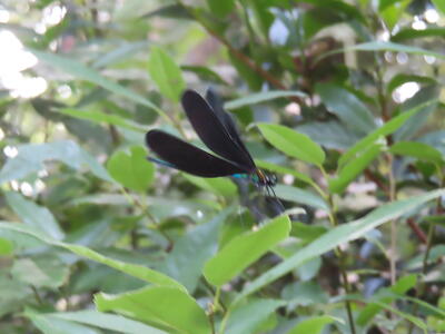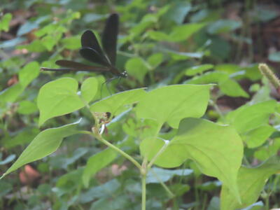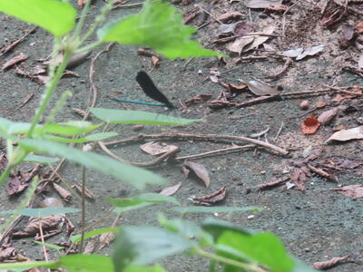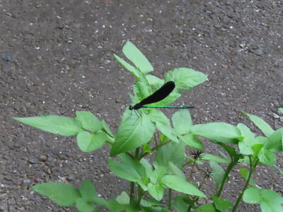 昨年は一匹しか見ることができなかったハグロトンボが三匹飛んでいました。