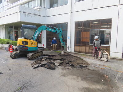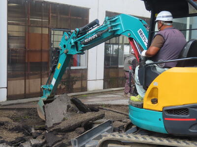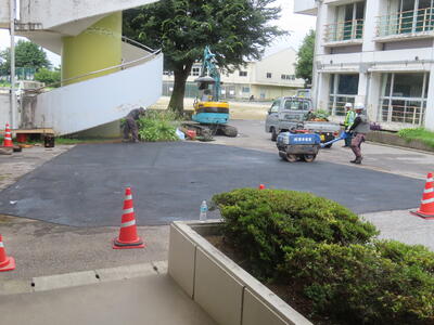 教育委員会の皆さん、ありがとうございます!!!職員昇降口側の陥没していたアスファルトを工事していただきました。これで給食の配送車が大きく揺れたり、車が車体をすったりすることがなくなります。しかし、職人さんたちはすごいです。この暑さの中の作業、重機の取扱い、プロです。感動しました。そして、ありがとうございました。