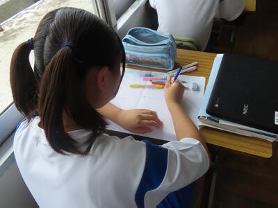 1年生の美術です。何を描くか、迷っていました。