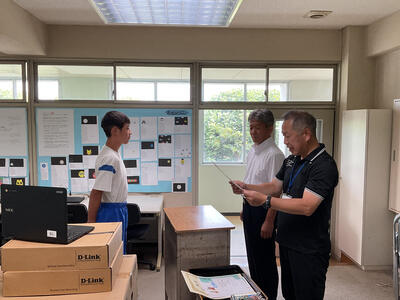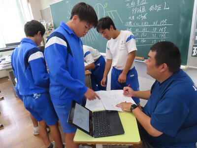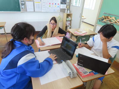 1年生の数学です。先生が3人入って、授業を進めていました。