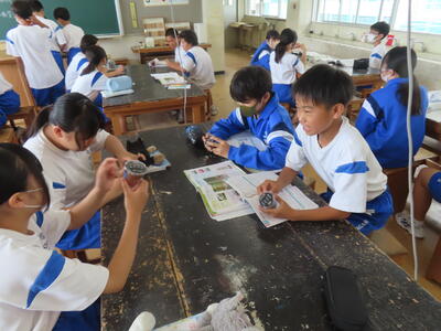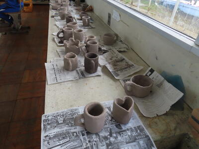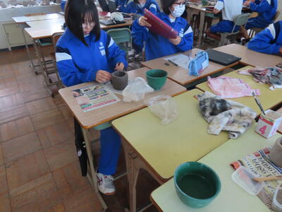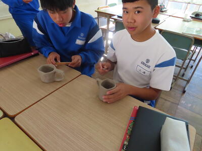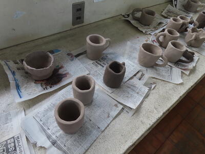 3年生の美術、陶芸です。湯呑みやマグカップを作っていました。重くないといいです。