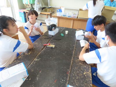 2年生の技術です。ラジオを完成させた生徒もいました。