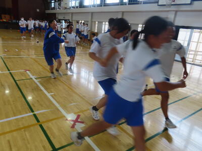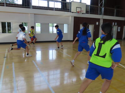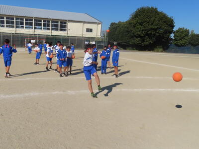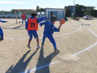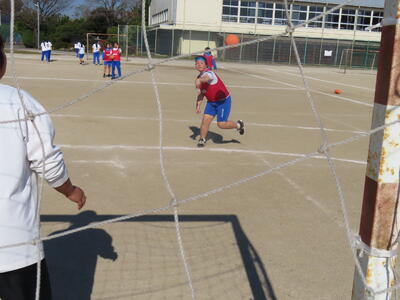 1年生の保体も男女合同でハンドボールをしました。元気にボールを追っていました。
