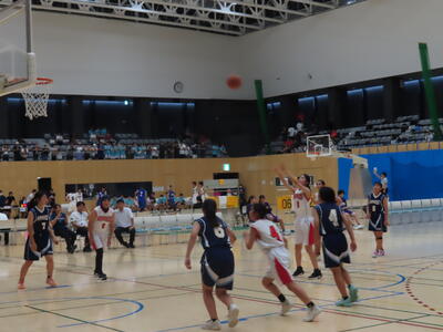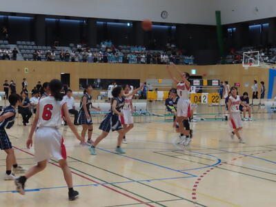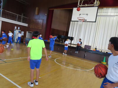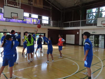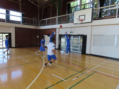 2年生男子の保体、バスケットボールです。なかなかシュートが決まりません。