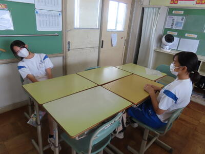 1年生の英語です。ペアトークしていました。