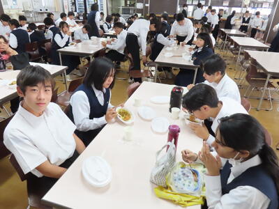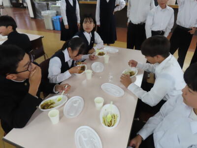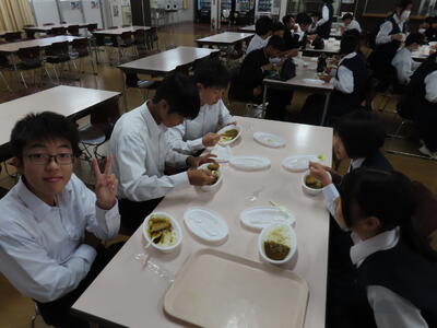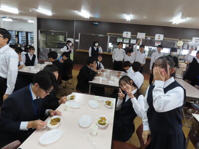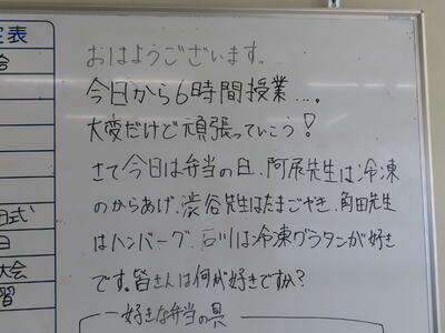 HP担当者、登校指導後、出張のため松戸へ。14時頃、学校に戻ると生徒はすでに下校していました。今日は給食が素晴らしかった、とのこと。(職員室での話)保護者の皆さん、是非、お子さんに本日の給食について聞いてみてください。
