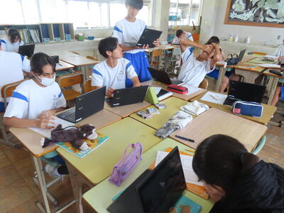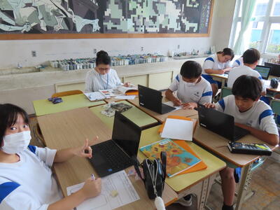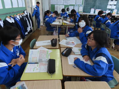 1年生は校外学習に向けた取り組みを進めていました。