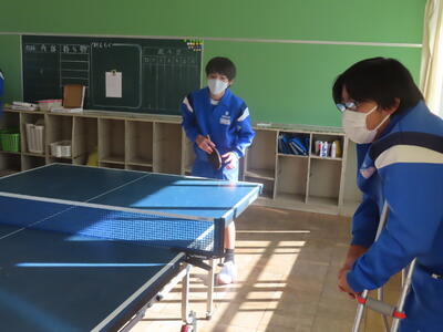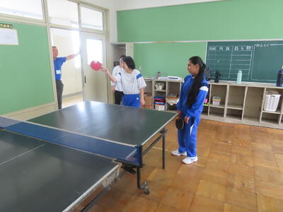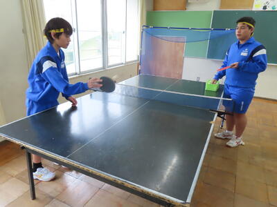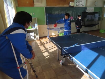 松の実学級の体育、卓球です。みんな上手になってきました。