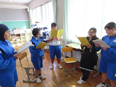 2年生の英語です。気持ちよさそうに、楽しそうに、読んでいるのですが、、、