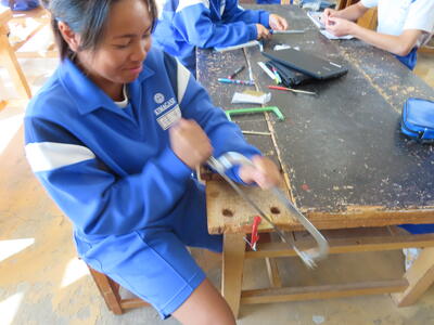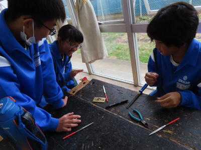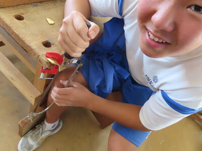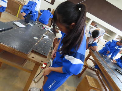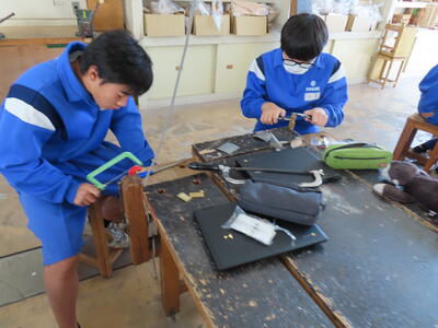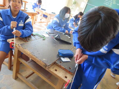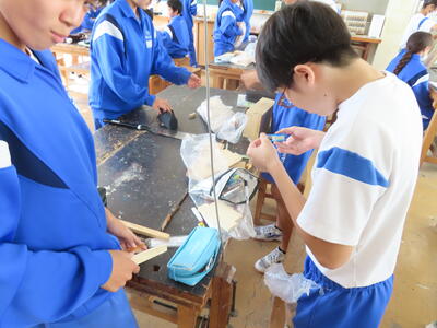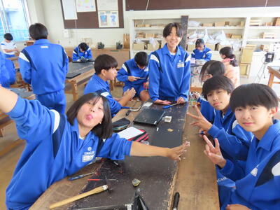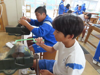 2年生の技術科、金属加工です。耳障りな音は小さくなりました。完成した作品を見たいです。