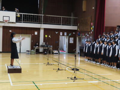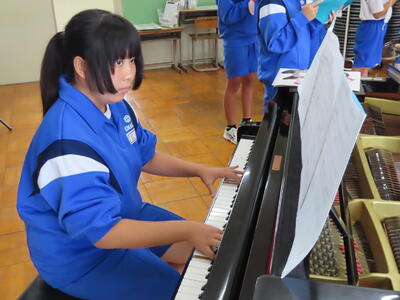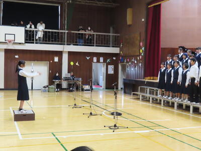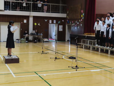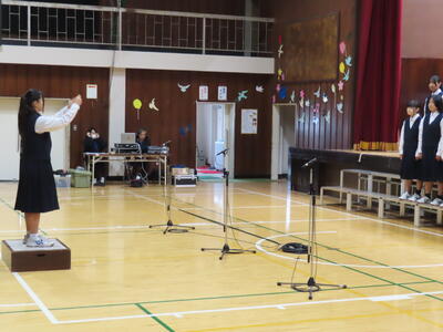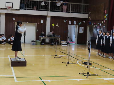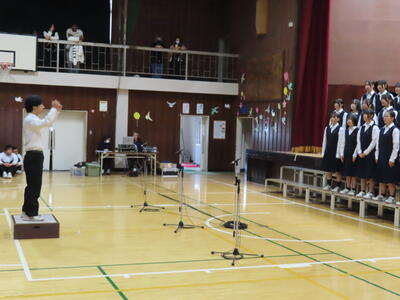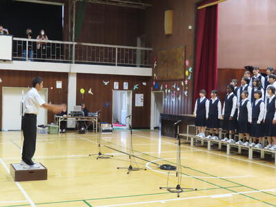 1年生の音楽です。順番に指揮をしていました。