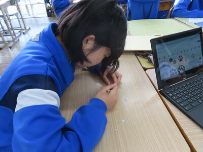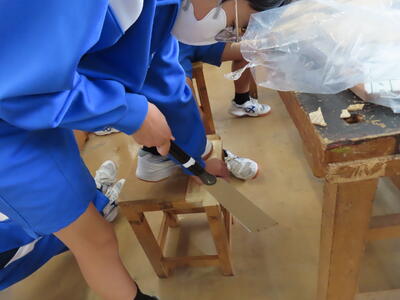1年生の技術です。木材加工、どのような作品に仕上がるのか、、、少し心配です。