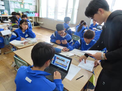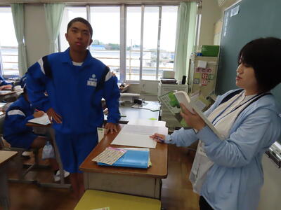 松の実学級での、教育実習生の授業です。