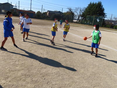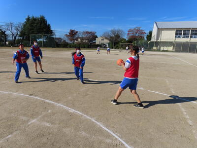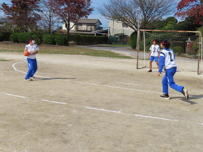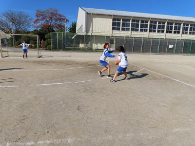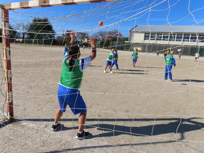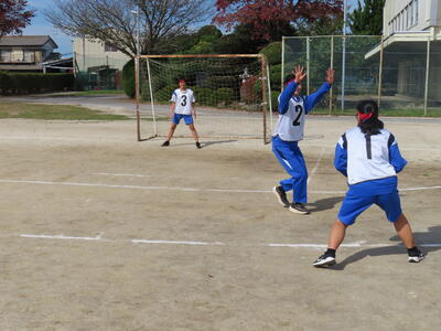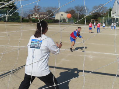 2年生女子の保体、ハンドボールです。なかなかゴールを割ることができません。