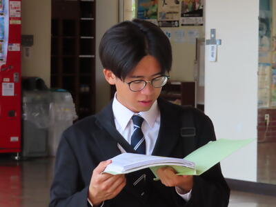 今年の登校日も残すところ今日を含め18日となりました。年の瀬が近づいているんですね。そんな12月初日ですが、とても暖かい一日となりました。HP担当者の部屋は壁の2方向がガラスなので、今日のように太陽が照らす日は室内の温度が上昇します。今日はTシャツでした。インフルエンザの流行がニュースでも報道されているのに、本校は今日も0名でした。4日(木)の1年生校外学習は元気に出発できそうです。