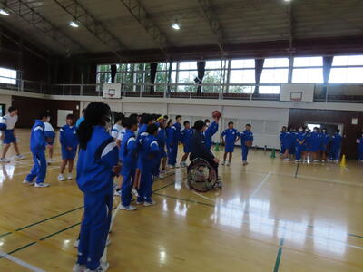 2年生の保体です。今日は男女合同でハンドボールをしました。